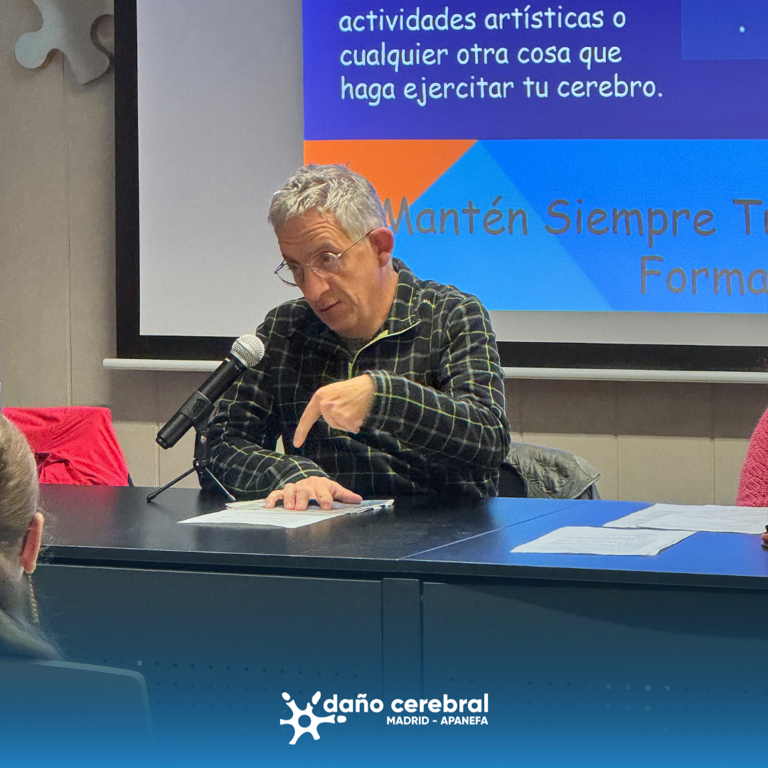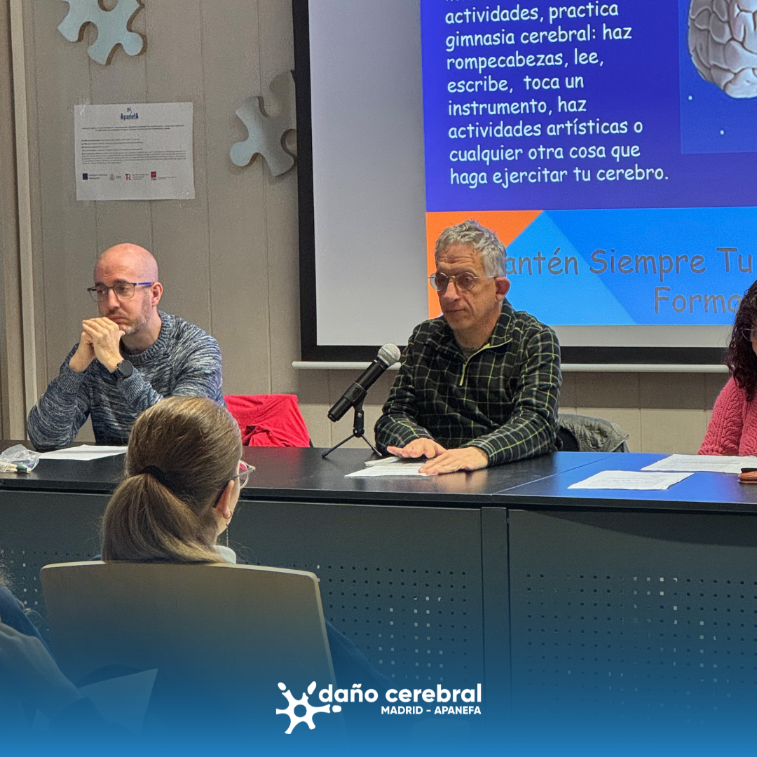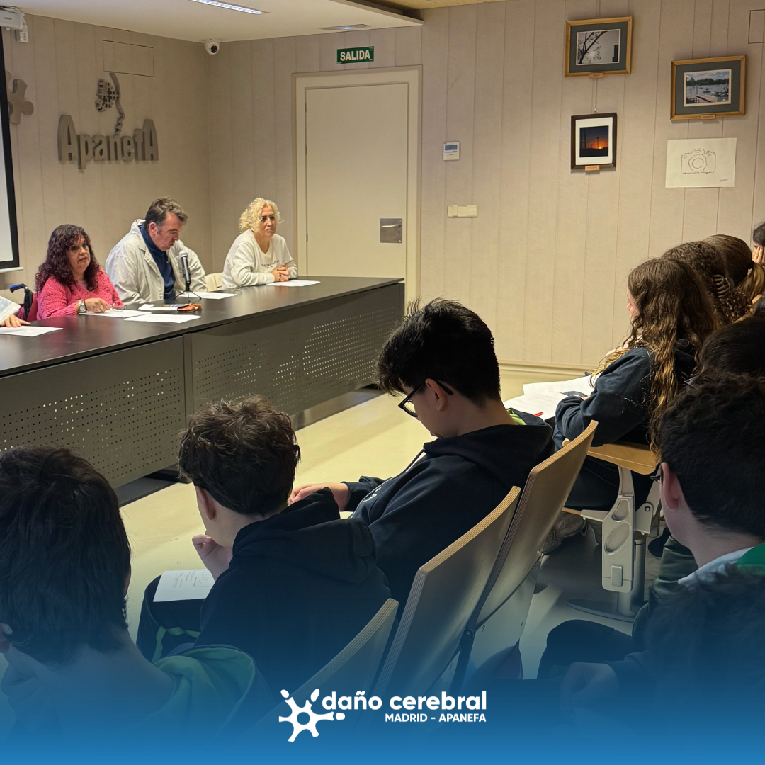 Las personas usuarias del Centro de Día, acompañados y guiados en todo momento por Lorena, psicóloga del Centro de Día, exponen a los alumnos cómo es vivir con daño cerebral y cómo se han adaptado al día a día, así como enseñarles en qué consiste el daño cerebral y qué tipo de lesiones existen.